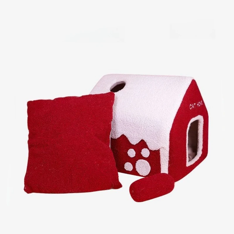 Christmas Snowhouse Shape Cat Bed Semi-Enclosed Cat House Washable Cat Nest Warm Pet House Indoor Kitten Cave Cushion